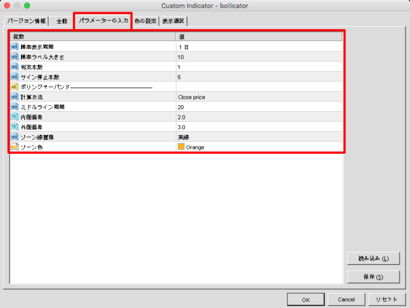 それでは次に、ボリンジャーバンドタッチサインツール「bolicator」の設定について、説明していきます。